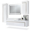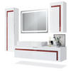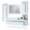 Design: Der Korpus des Badezimmersets in Weiß matt und die Fronten in Weiß Hochglanz, sowie die Absetzungen in Eiche Natur sorgen für ein modernes, wohnliches Ambiente. Oder wählen Sie aus vielen, weiteren Farbkombinationen das passende Design.