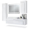 Stauraum: Das geräumige Badmöbelset Aloha bietet reichlich Platz für Ihre Badezimmerutensilien. Es umfasst einen hängenden Waschbeckenunterschrank mit einer Klappe und zwei Hängeschränke, die Ihnen zusätzlichen Stauraum bieten.