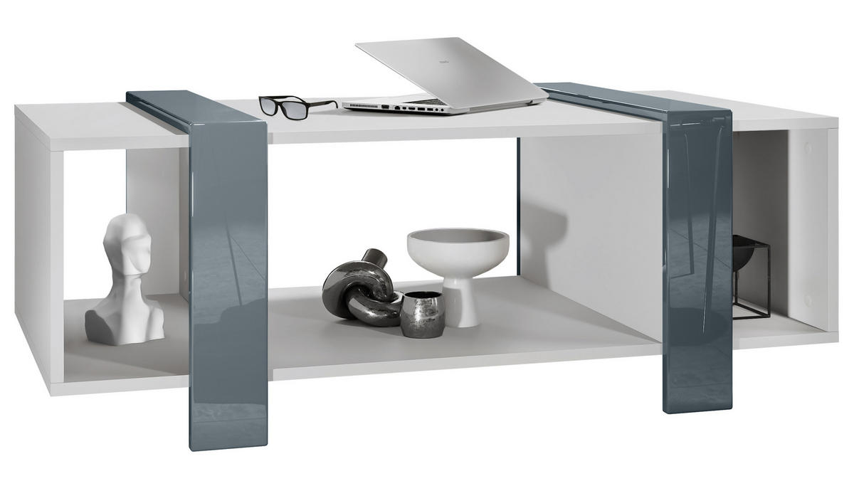 Niedriger Tisch mit ausgesprochen viel Stauraum: Unter der Tischplatte befinden sich drei Ablageflächen für z.B. die Fernsehzeitung oder Dekorationen
