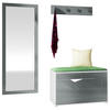 Lieferumfang: Enthalten ist die Schuhbank, ein großer Wandspiegel, eine Garderobenleiste, sowie eine detaillierte bebilderte Anleitung und das notwendige Montagematerial. Maße der Garderobe ca. (BxHxT): 160 x 190 x 33 cm