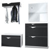 Stauraum: Das Garderobenset Kolmio bietet großzügigen Stauraum für Ihre Schuhe und Kleidung. Der Schuhschrank verfügt über eine Schublade und zwei Klappen mit je zwei Metallstreben, die insgesamt Platz für bis zu 16 Paar Schuhe bieten. Die Schuhbank bietet zusätzlichen Raum für weitere 8 Schuhpaare.