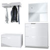 Stauraum: Das Garderobenset Kolmio bietet großzügigen Stauraum für Ihre Schuhe und Kleidung. Der Schuhschrank verfügt über eine Schublade und zwei Klappen mit je zwei Metallstreben, die insgesamt Platz für bis zu 16 Paar Schuhe bieten. Die Schuhbank bietet zusätzlichen Raum für weitere 8 Schuhpaare.