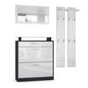 Öffnung: Der schmale Schuhschrank des Garderobensets und die Wandpaneele sind mit dezenten, silbernen Griffen bzw. Garderobenhaken ausgestattet. Dank dem schlichten und zeitlosen Design passt das Set zu vielen verschiedenen Einrichtungsstilen.