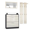 Stauraum: Das moderne Garderobenset für den Flur ist ein wahres Platzwunder - 1 Schuhschrank, 2 Garderobenpaneele mit Ablage und 1 Wandspiegel bieten viel Stauraum für allerlei Gegenstände im Flur, wie z.B. für Schuhe, Jacken und Accessoires.