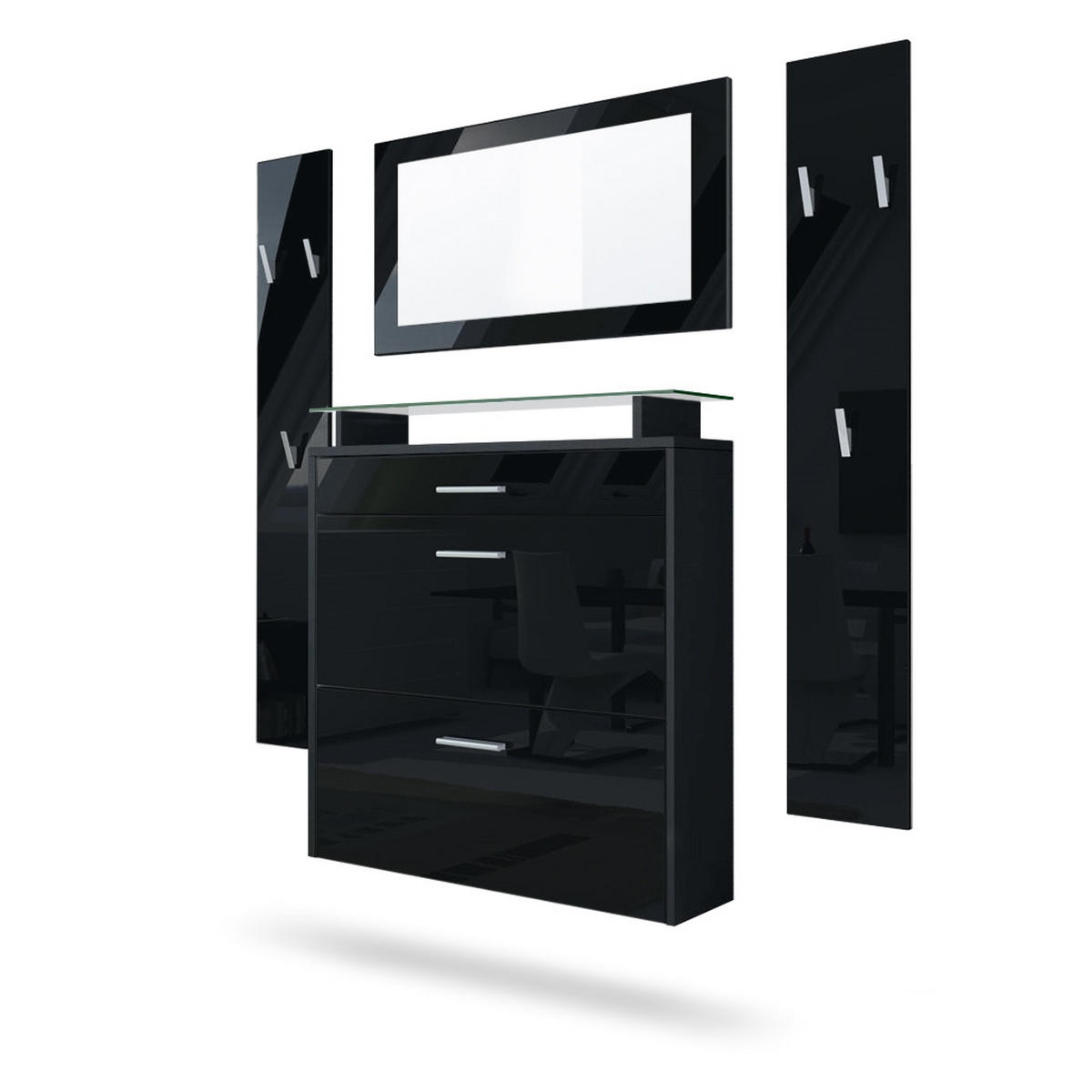 Vladon GARDEROBE Malea Front in Schwarz Hochglanz