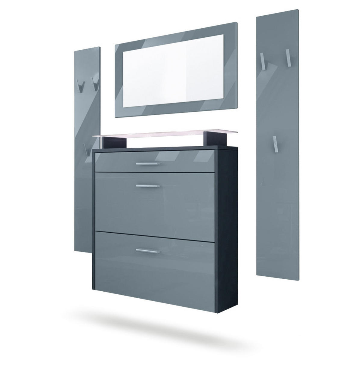 Vladon GARDEROBE Malea Fronten in Grau Hochglanz