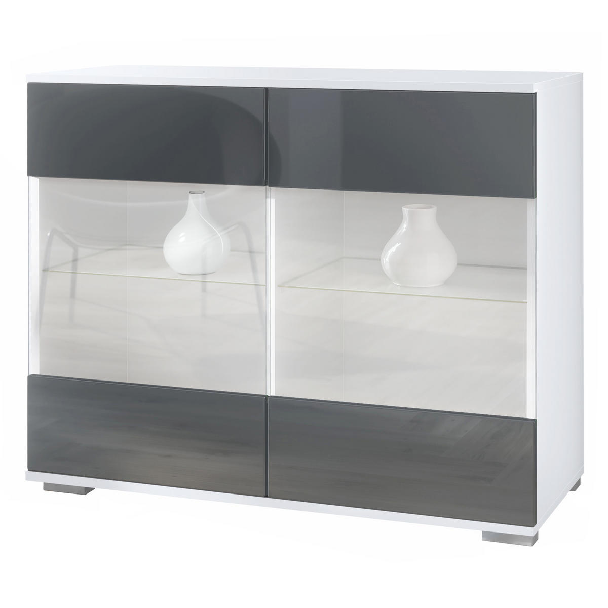 Design: Das minimalistische Design des Sideboards wird durch den eleganten Korpus in Weiß matt und die frontale Gestaltung in Grau Hochglanz unterstrichen. Oder wählen Sie aus vielen, weiteren Farbkombinationen das passende Design.