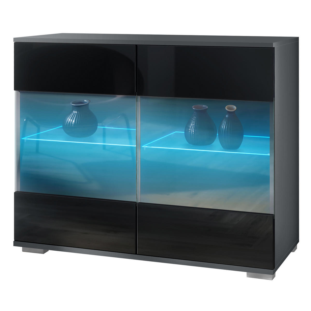 Design: Das minimalistische Design des Sideboards wird durch den eleganten Korpus in Anthrazit matt und die frontale Gestaltung in Schwarz Hochglanz unterstrichen. Oder wählen Sie aus vielen, weiteren Farbkombinationen das passende Design.