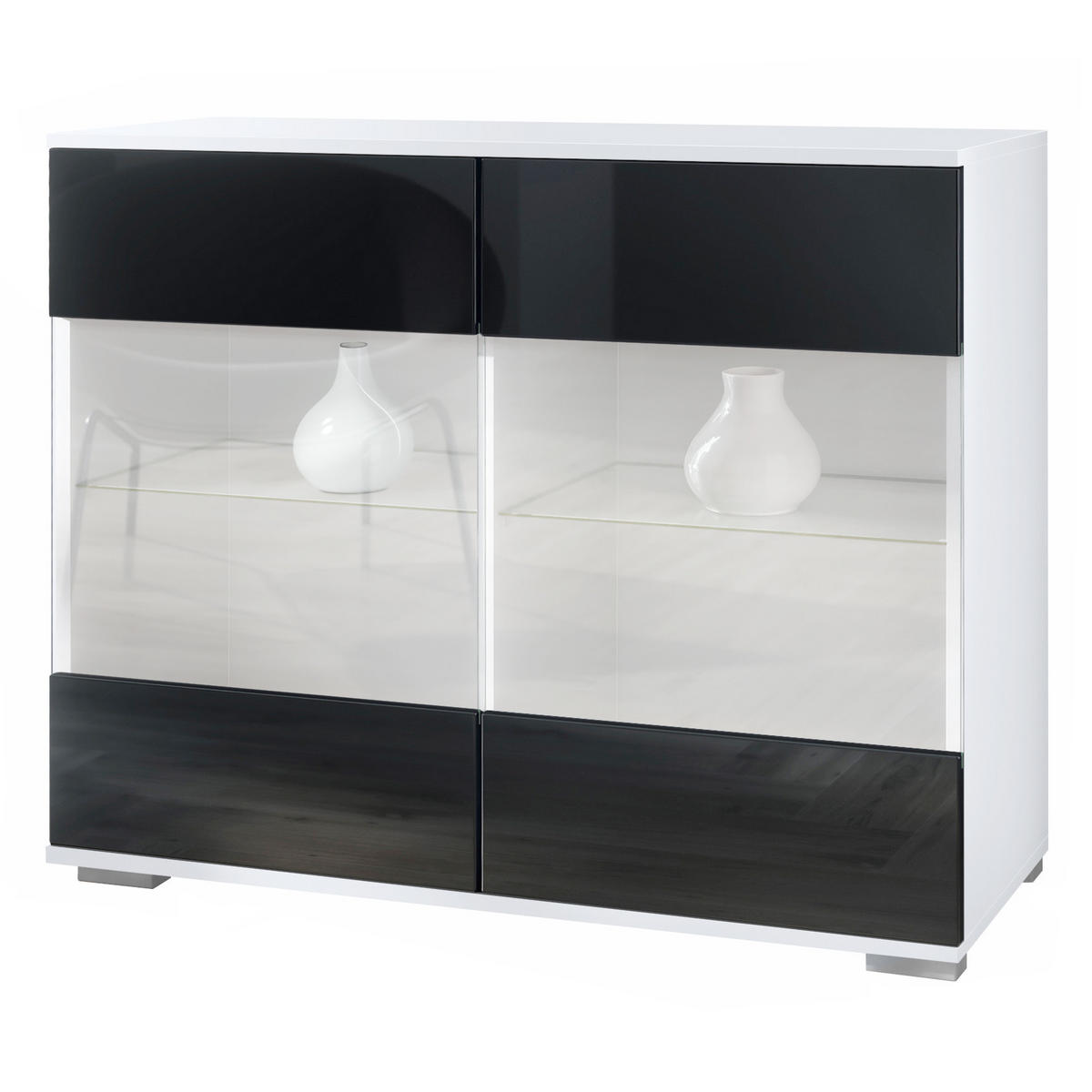 Design: Das minimalistische Design des Sideboards wird durch den eleganten Korpus in Weiß matt und die frontale Gestaltung in Schwarz Hochglanz unterstrichen. Oder wählen Sie aus vielen, weiteren Farbkombinationen das passende Design.