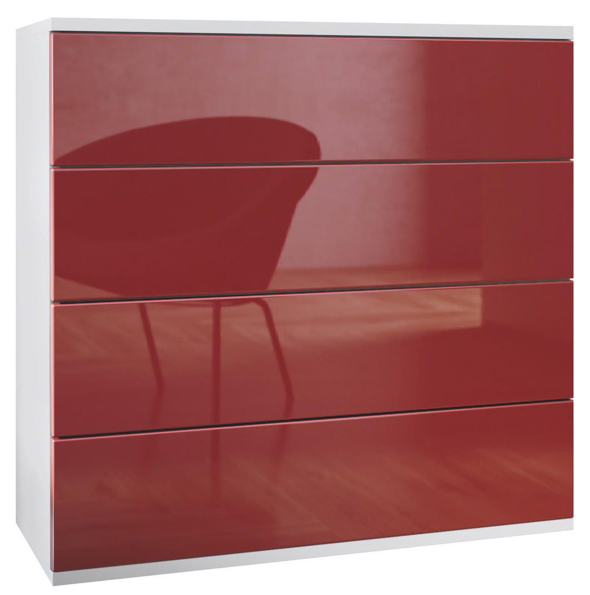 Design: Der Korpus der Kommode in Weiß matt und die Fronten in Bordeaux Hochglanz sorgen für ein modernes, wohnliches Ambiente. Oder wählen Sie aus vielen, weiteren Farbkombinationen das passende Design.