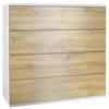 Lieferumfang: Enthalten sind die Kommode, eine detaillierte bebilderte Anleitung und das notwendige Montagematerial. Schneller und einfacher Aufbau garantiert! Maße des Standschrankes in cm (BxHxT): 76 x 76 x 35.