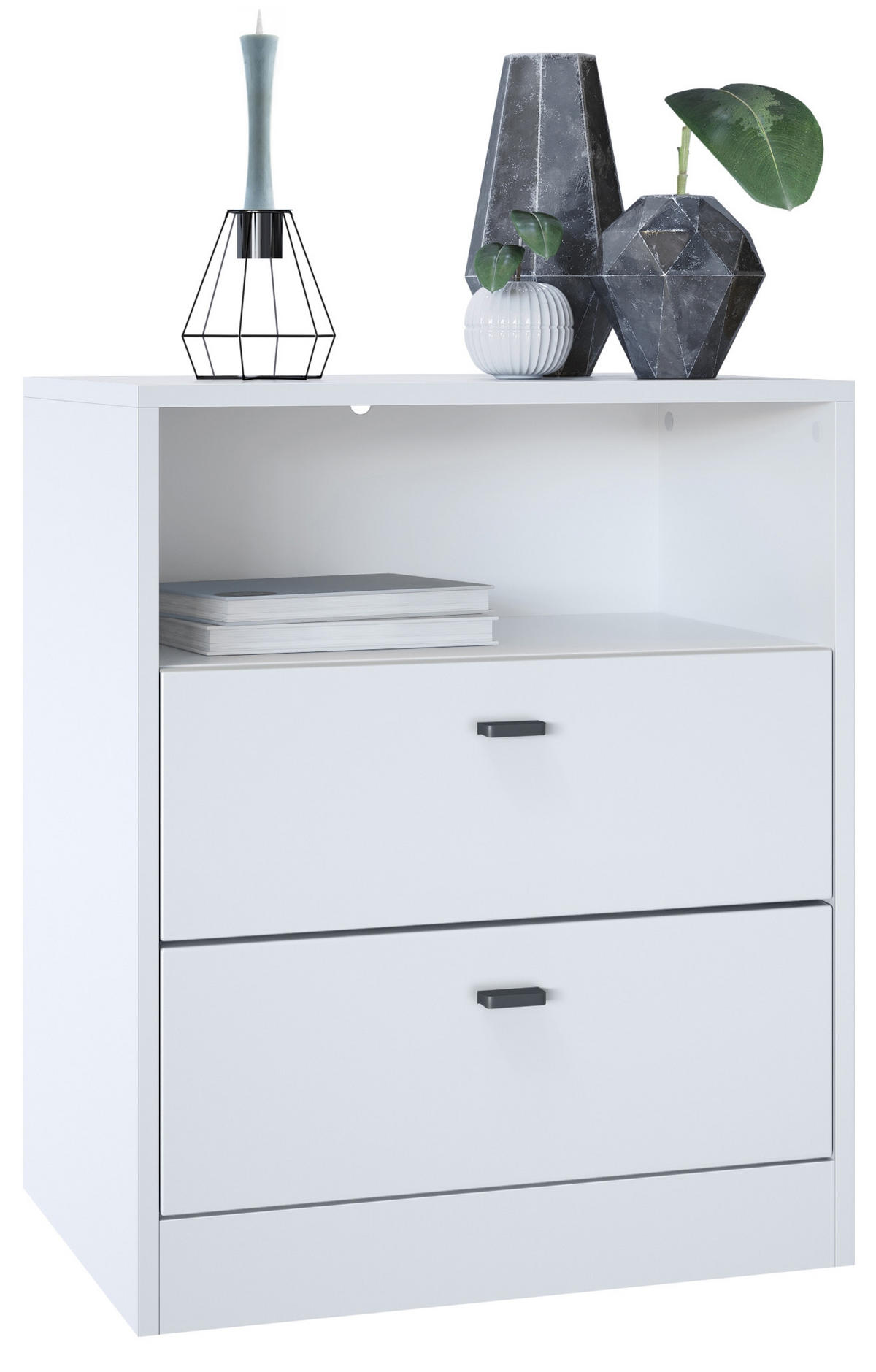 Stauraum: Die Kommode mit 2 Schubladen und einem offenen Fach ist ein wahres Platzwunder – in den Fächern lassen sich allerlei Gegenstände gut sortiert unterbringen
