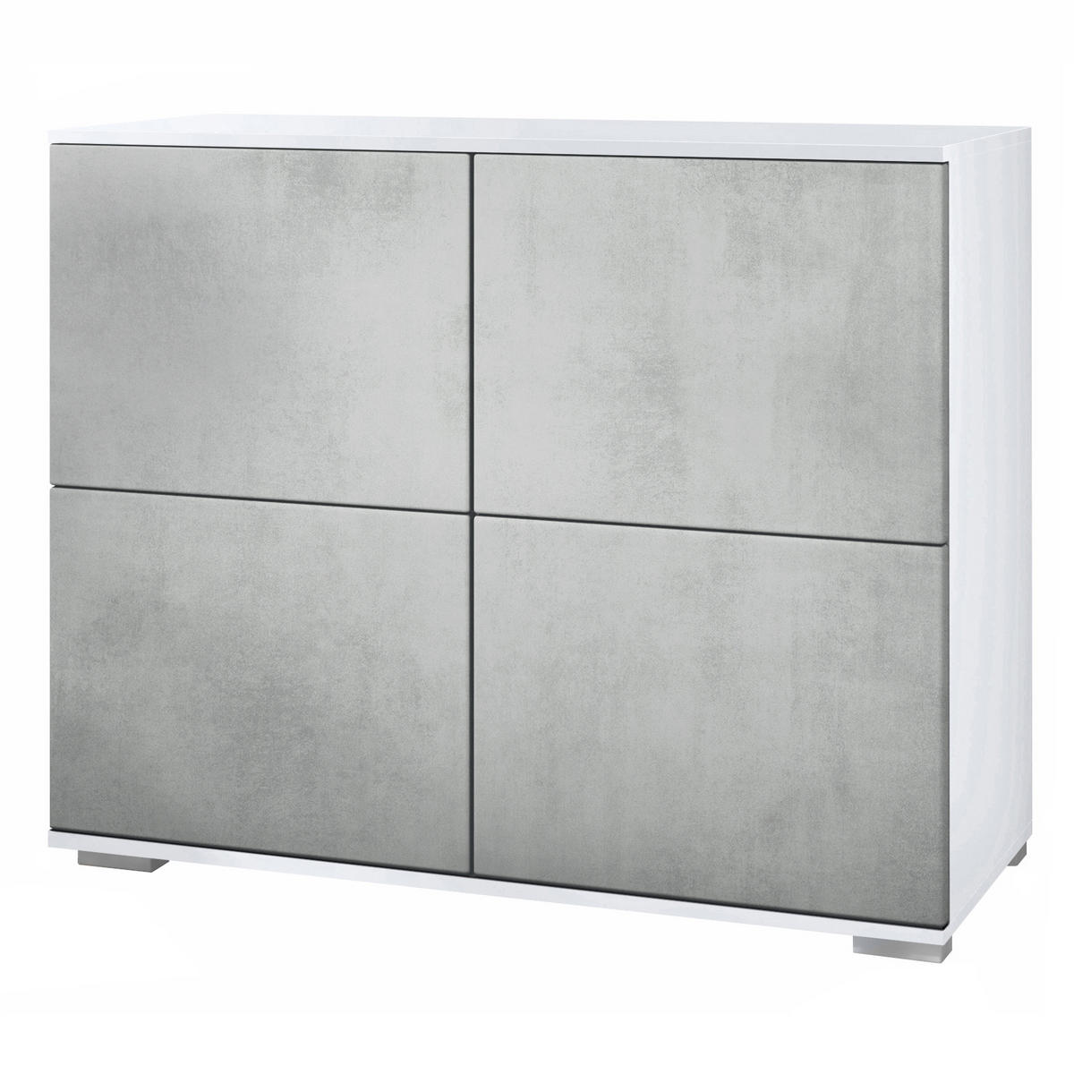 Design: Das minimalistische Design des Sideboards wird durch den eleganten Korpus in Weiß matt und die frontale Gestaltung in Beton Oxid Optik unterstrichen. Oder wählen Sie aus vielen, weiteren Farbkombinationen das passende Design.