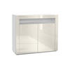 Öffnung: Die Türen der modernen Kommode Valencia lassen sich dank praktischer Überstände ganz bequem öffnen. Die grifflose Optik der Kommode fügt sich so schlicht in Ihr Wohnzimmer, den Flur oder das Schlafzimmer ein.