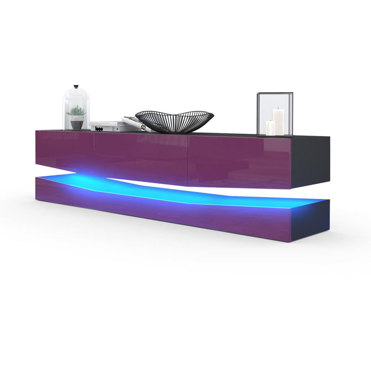 Design: Der Korpus des TV-Sideboards in Schwarz matt und die Fronten in Brombeer Hochglanz sorgen für ein modernes, wohnliches Ambiente. Oder wählen Sie aus vielen, weiteren Farbkombinationen das passende Design.