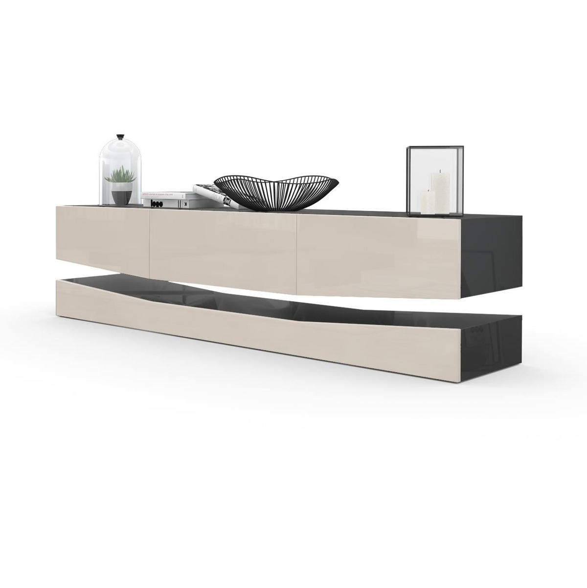Design: Der Korpus des TV-Sideboards in Schwarz Hochglanz und die Fronten in Sandgrau Hochglanz sorgen für ein modernes, wohnliches Ambiente. Oder wählen Sie aus vielen, weiteren Farbkombinationen das passende Design.