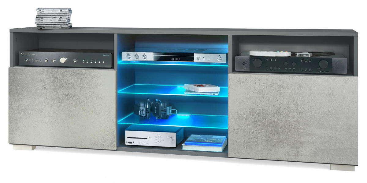 Material: Dank hochwertig foliierter MDF-Fronten und einem Korpus aus Spanplatten mit Melaminbeschichtung ist der TV-Ständer angenehm leicht, stabil und pflegeleicht. Wertige Verarbeitung - Made in Germany.