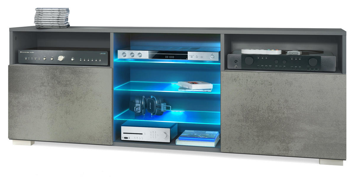 Material: Dank hochwertig foliierter MDF-Fronten und einem Korpus aus Spanplatten mit Melaminbeschichtung ist der TV-Ständer angenehm leicht, stabil und pflegeleicht. Wertige Verarbeitung - Made in Germany.
