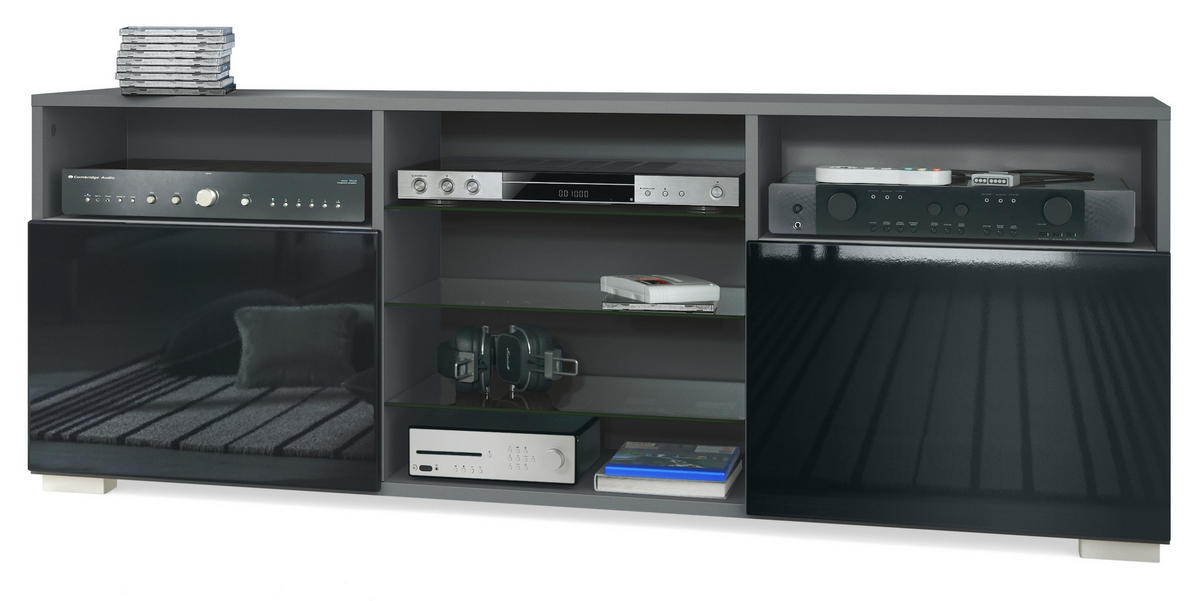 Stauraum: Das Granada TV-Board bietet Ihnen insgesamt 8 Fächer, 6 davon offen, in denen allerlei Gegenstände wie z.B. Spielkonsolen, Receiver oder DVDs Platz finden können.