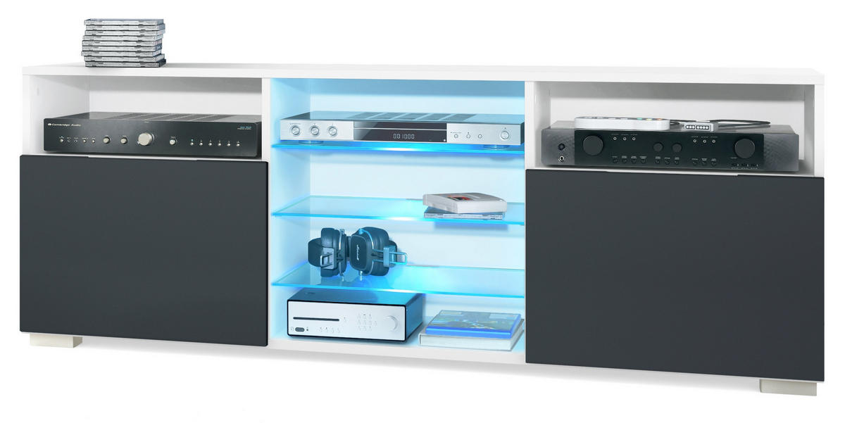 Stauraum: Das Granada TV-Board bietet Ihnen insgesamt 8 Fächer, 6 davon offen, in denen allerlei Gegenstände wie z.B. Spielkonsolen, Receiver oder DVDs Platz finden können.