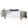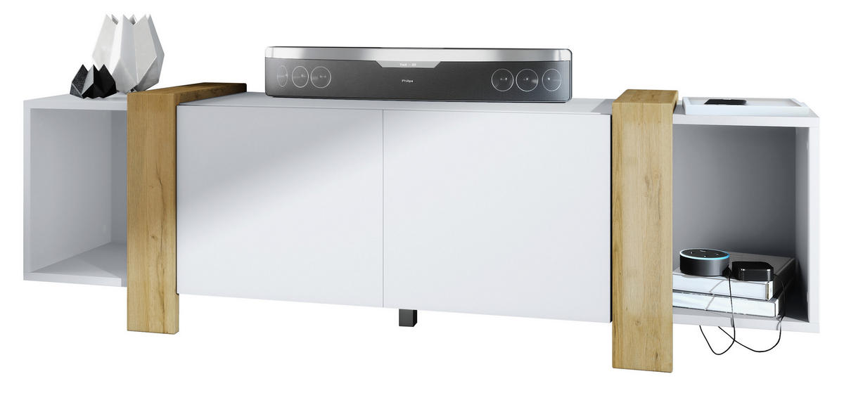 Reichlich Stauraum: Der TV-Schrank hat insgesamt 4 Fächer, zwei offene und zwei weitere hinter den mittigen Türen, damit allerlei Gegenstände gut sortiert untergebracht werden können