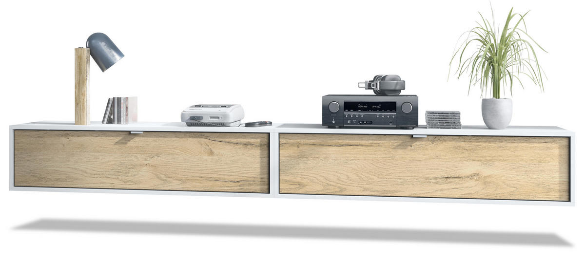 Flexibel einsetzbar und erweiterbar: Multifunktionales Hängeelement als TV Board, Sideboard oder kann mit anderen Lana Elementen zu einer Wohnwand erweitert werden. Einfacher Zusammenbau mit detaillierter Anleitung. Maße eines einzelnen Lowboards in cm circa (BxHxT): 120 x 29 x 37