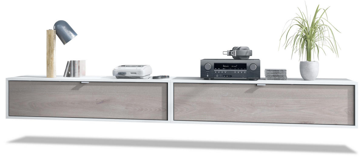 Flexibel einsetzbar und erweiterbar: Multifunktionales Hängeelement als TV Board, Sideboard oder kann mit anderen Lana Elementen zu einer Wohnwand erweitert werden. Einfacher Zusammenbau mit detaillierter Anleitung. Maße eines einzelnen Lowboards in cm circa (BxHxT): 120 x 29 x 37