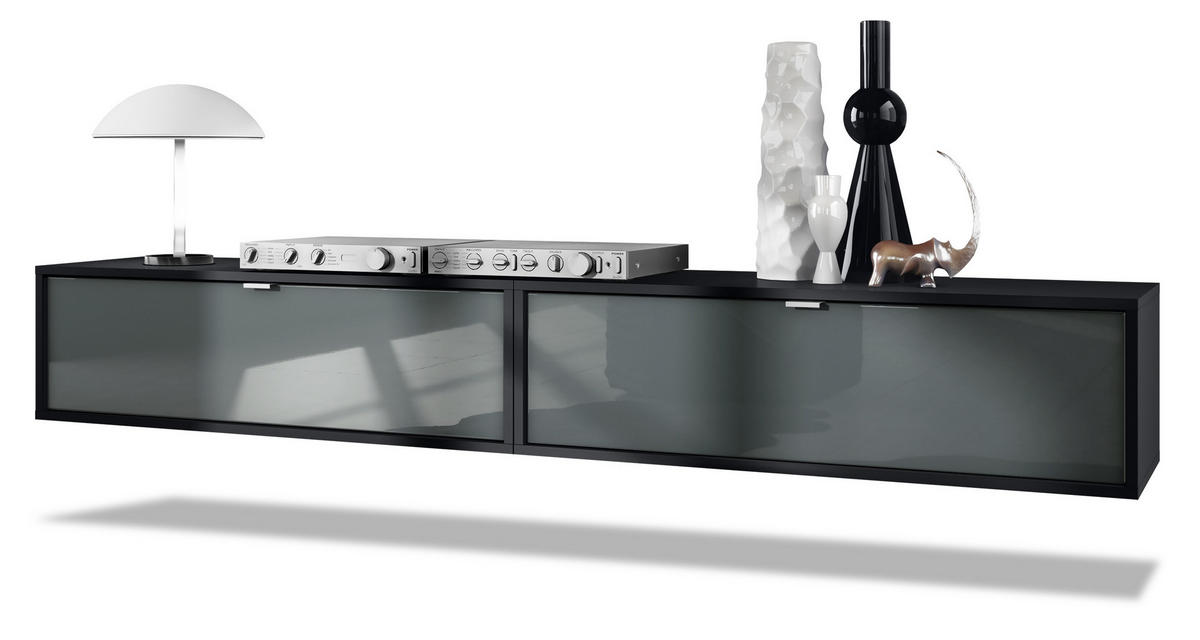 Design: Der Korpus des Hängeschranks in Schwarz matt und die Fronten in Grau Hochglanz sorgen für ein modernes, wohnliches Ambiente. Oder wählen Sie aus vielen, weiteren Farbkombinationen das passende Design.