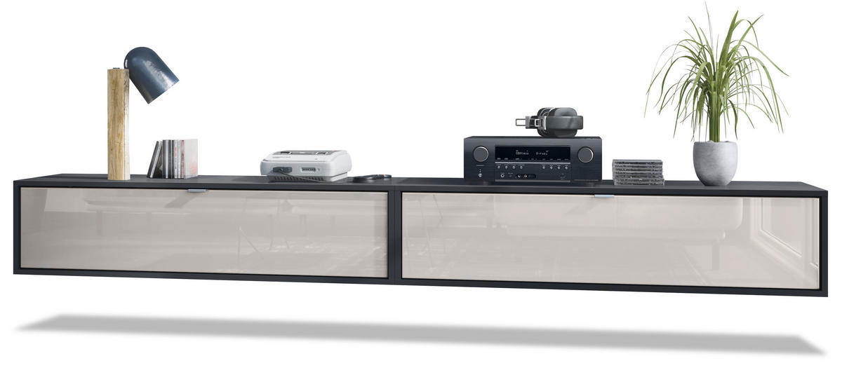 Design: Der Korpus der Kommode in Schwarz matt und die Fronten in Sandgrau Hochglanz sorgen für ein modernes, wohnliches Ambiente. Oder wählen Sie aus vielen, weiteren Farbkombinationen das passende Design.