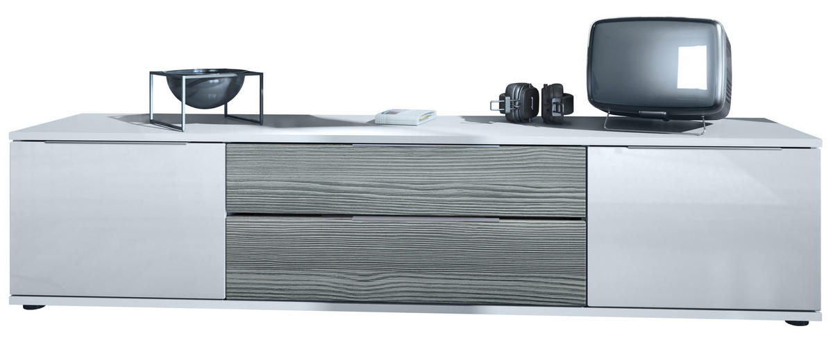 Design: Der Korpus des TV-Boards ist in mattem Weiß gehalten, die Türen in Weiß Hochglanz und die Schubladen in Avola-Anthrazit. Alternativ können Sie aus zahlreichen Farbkombinationen das passende Design auswählen.