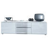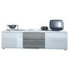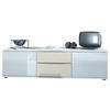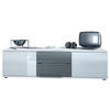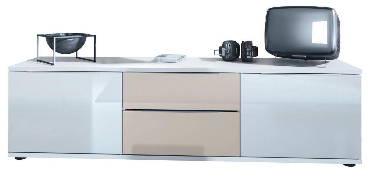 Design: Der Korpus des TV-Boards ist in mattem Weiß gehalten, die Türen in Weiß Hochglanz und die Schubladen in Sandgrau Hochglanz. Alternativ können Sie aus zahlreichen Farbkombinationen das passende Design auswählen.