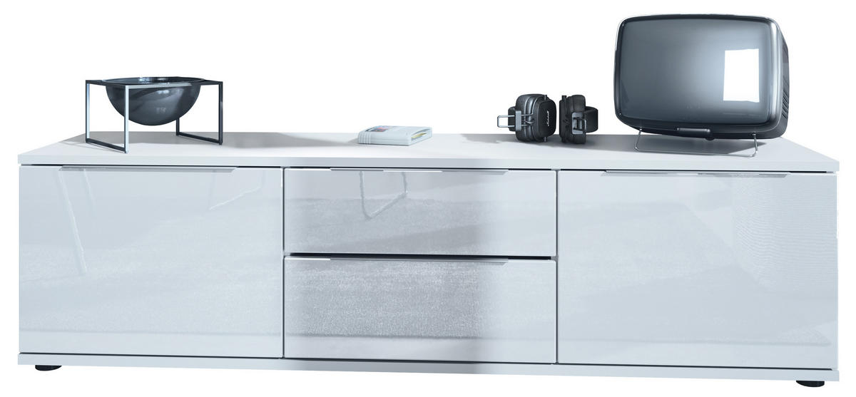 Design: Der Korpus des TV-Boards ist in mattem Weiß gehalten, die Türen in Weiß Hochglanz und die Schubladen in Weiß Hochglanz. Alternativ können Sie aus zahlreichen Farbkombinationen das passende Design auswählen.