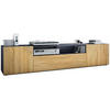 Praktisches TV Board mit zwei Türen, einer Klappe und einem offenen Bereich, welcher perfekt für Receiver, Konsolen oder andere technische Geräte geeignet ist