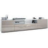 Stauraum: Das moderne TV-Lowboard mit Rückwand bietet mit 2 Türen, dahinter je 1 Fach, 1 Fach mit Klappe und 1 offenem Fach mit Unterteilung viel Stauraum für Receiver, Spielkonsolen und Co. Der Fernsehtisch kann hängend oder stehend montiert werden.