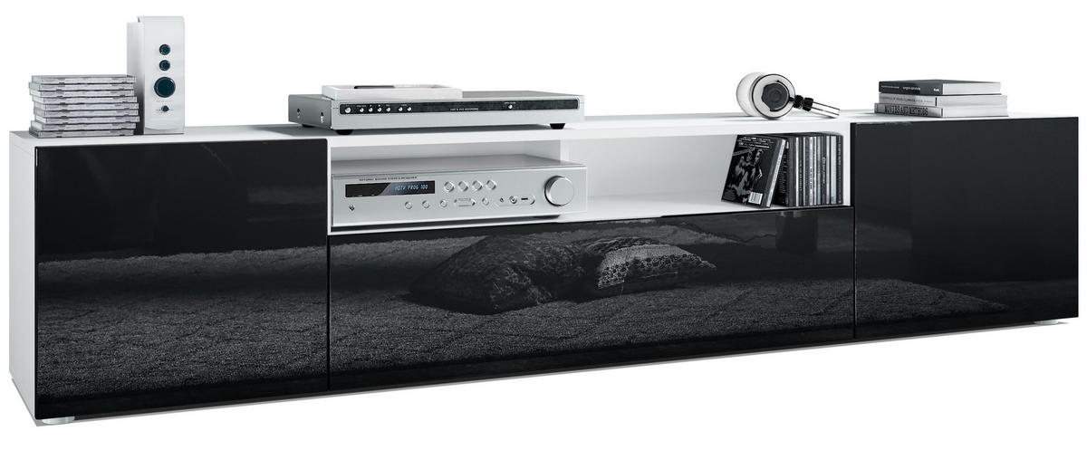Design: Der Korpus des TV-Unterschranks in Weiß matt und die Fronten in Schwarz Hochglanz sorgen für ein modernes, wohnliches Ambiente. Oder wählen Sie aus vielen, weiteren Farbkombinationen das passende Design.