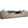 Stauraum: Das moderne TV-Lowboard mit Rückwand bietet mit 2 Türen, dahinter je 1 Fach, 1 Fach mit Klappe und 1 offenem Fach mit Unterteilung viel Stauraum für Receiver, Spielkonsolen und Co. Der Fernsehtisch kann hängend oder stehend montiert werden.