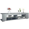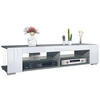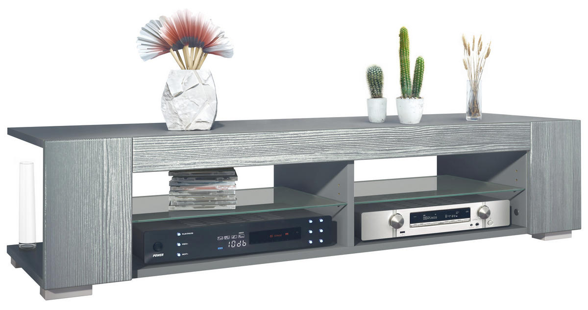 Stauraum: Das moderne TV-Lowboard ist ein wahres Platzwunder - 4 offene Fächer, 2 Glasböden und 2 seitliche Fächer bieten Stauraum für allerlei Gegenstände. Für einen problemlosen Anschluss aller Elektrogeräte wurde auf eine Rückwand verzichtet.