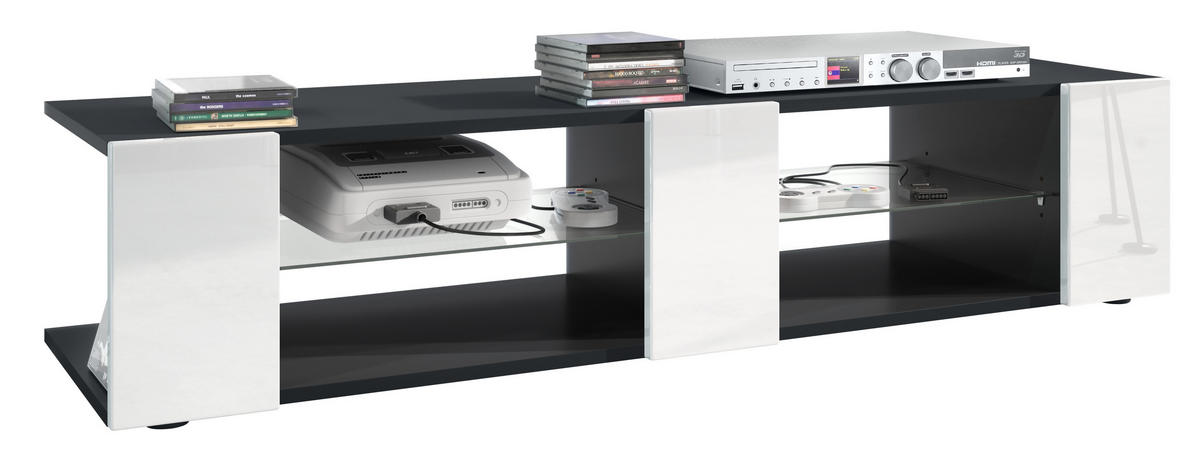 Design: Der Korpus des TV-Boards in Schwarz matt und die Fronten in Weiß Hochglanz sorgen für ein modernes, wohnliches Ambiente. Oder wählen Sie aus vielen, weiteren Farbkombinationen das passende Design.