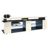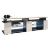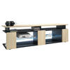 Multifunktionales Lowboard in modernem Design: mit seinen 3 farbigen Zierleisten sowie den eleganten, schmalen Glasablagen ist dieser Fernsehtisch ein echter Hingucker; inkl. Monitorerhöhung Game