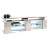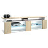 Multifunktionales Lowboard in modernem Design: mit seinen 3 farbigen Zierleisten sowie den eleganten, schmalen Glasablagen ist dieser Fernsehtisch ein echter Hingucker; inkl. Monitorerhöhung Game
