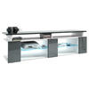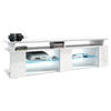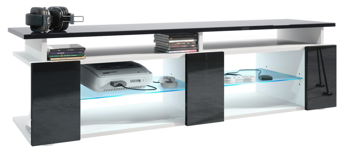 Äußerer Korpus in Weiß matt, Zierleisten sowie Game Aufsatz in Schwarz Hochglanz aus MDF mit abgerundeten Kanten zum Schutze von Kindern und Haustieren; Leuchtfarbe der zwei LED-Clips ist Blau