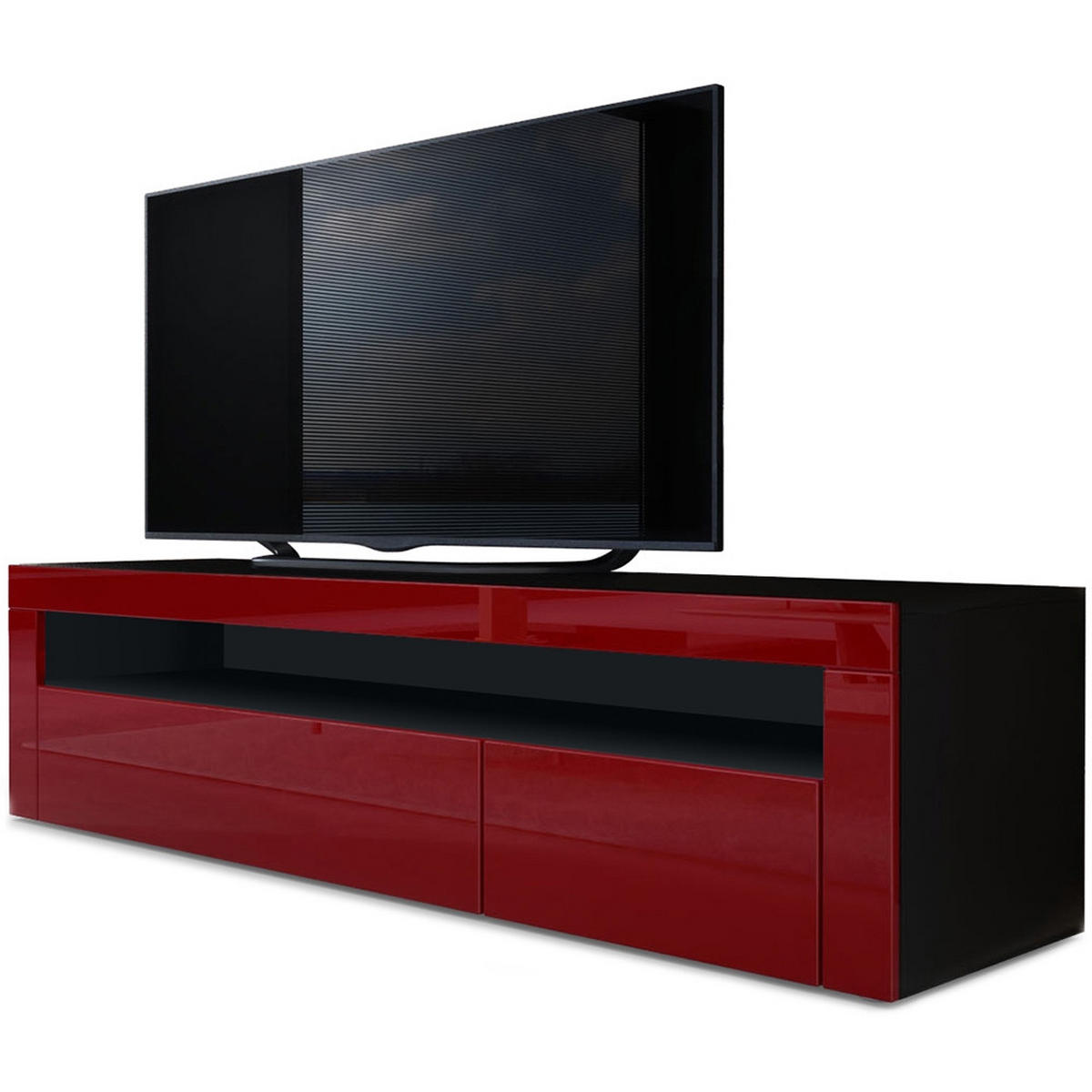 Design: Der Korpus des Lowboards in Schwarz matt, die Fronten in Bordeaux Hochglanz und der Rahmen in Bordeaux Hochglanz sorgen für ein modernes, wohnliches Ambiente. Oder wählen Sie aus vielen, weiteren Farbkombinationen das passende Design.