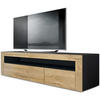 Stauraum: Das moderne TV-Lowboard mit Rückwand ist ein wahres Platzwunder - 1 offenes Ablagefach und 2 weitere Fächer mit Klappen bieten viel Stauraum für allerlei Gegenstände, wie z.B. für Receiver und Spielkonsolen.