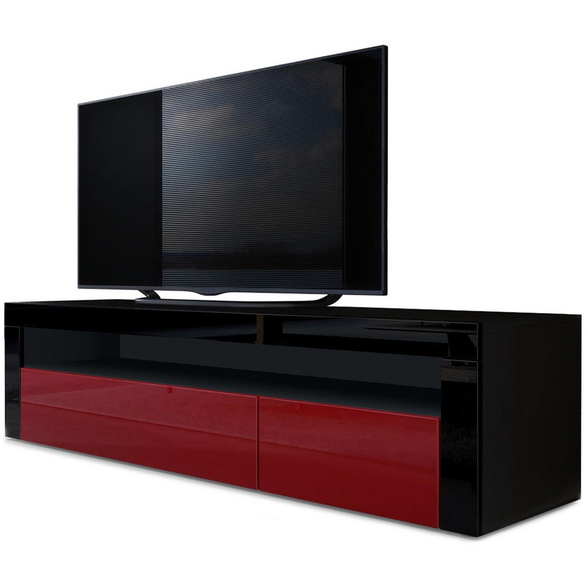 Design: Der Korpus des Lowboards in Schwarz matt, die Fronten in Bordeaux Hochglanz und der Rahmen in Schwarz Hochglanz sorgen für ein modernes, wohnliches Ambiente. Oder wählen Sie aus vielen, weiteren Farbkombinationen das passende Design.