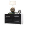 Öffnung: Die moderne Nachtkonsole mit Schubladen ist mit dezenten Griffen ausgestattet. Die Schubkästen der Nachtkommode verlaufen nahezu geräuschlos auf Teleskopschienen aus Metall, diese sorgen für eine leichte Handhabung der Schubladen.