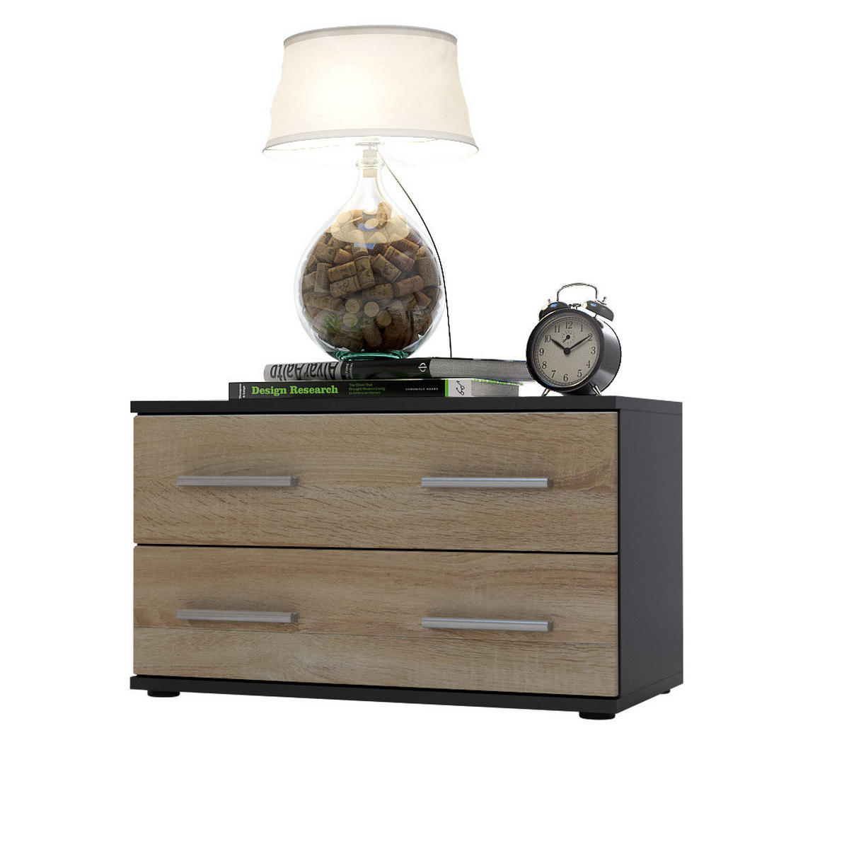 Design: Der Korpus des Beistelltischs in Schwarz matt und die Schubladen in Eiche sägerau sorgen für ein modernes, wohnliches Ambiente. Oder wählen Sie aus vielen, weiteren Farbkombinationen das passende Design.