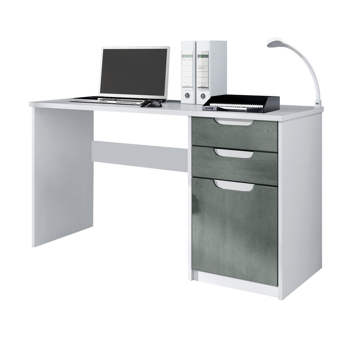 Design: Der Korpus des Bürotischs in Weiß matt und die Fronten in Beton dunkel Optik sorgen für ein modernes, wohnliches Ambiente. Oder wählen Sie aus vielen, weiteren Farbkombinationen das passende Design.