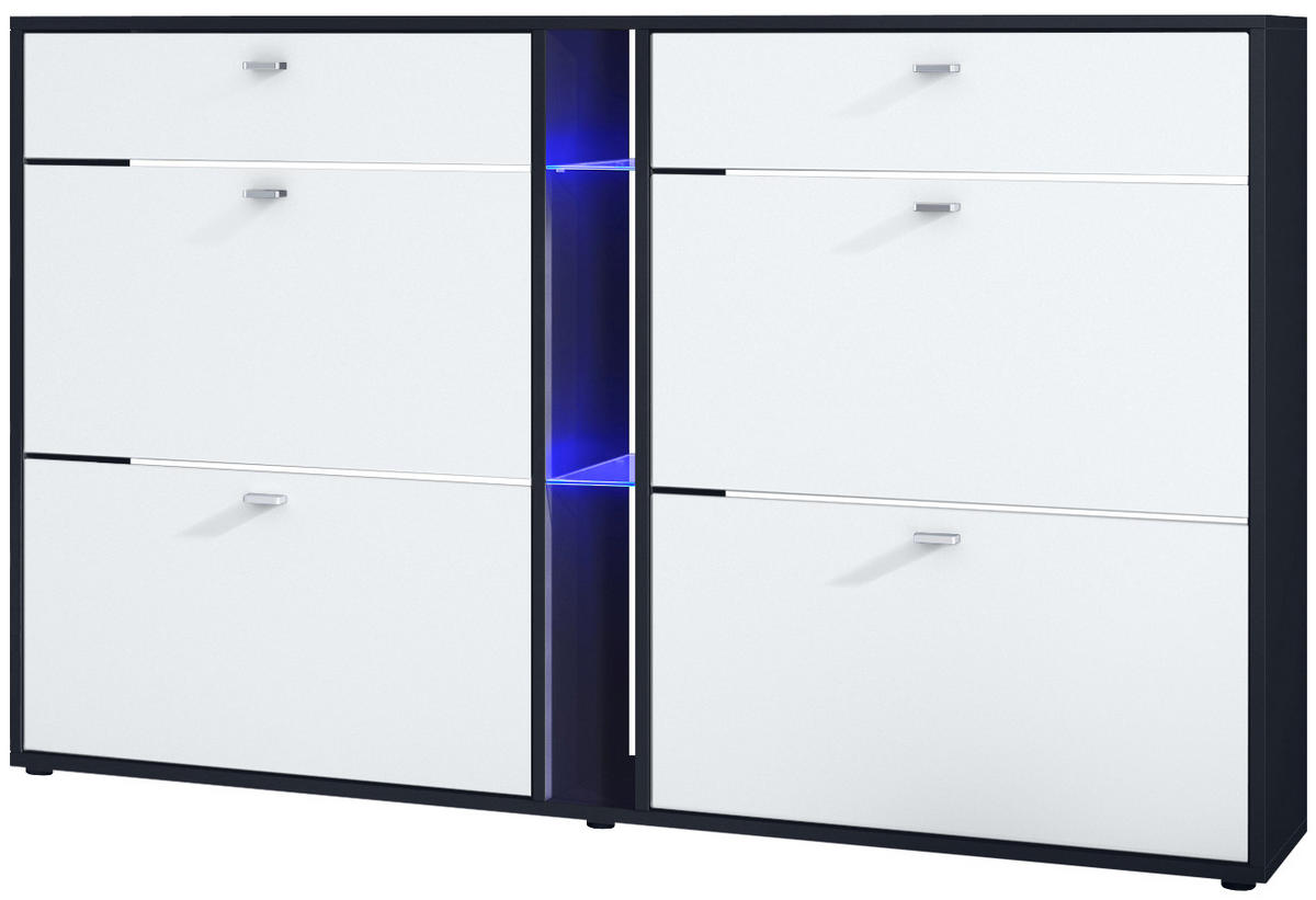 Lieferumfang: Enthalten sind der Schuhschrank, eine detaillierte bebilderte Anleitung, blaue LED Beleuchtung und das notwendige Montagematerial. Schneller und einfacher Aufbau garantiert! Maße des Schuregales in cm (BxHxT): 155,5 x 95 x 28