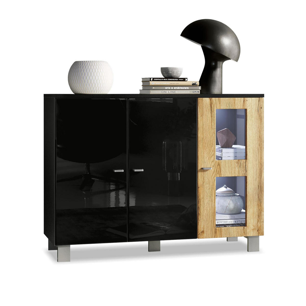 Design: Der Korpus der Kommode in Schwarz matt und die Fronten in Schwarz Hochglanz und Eiche Natur sorgen für ein modernes, wohnliches Ambiente. Oder wählen Sie aus vielen, weiteren Farbkombinationen das passende Design.
