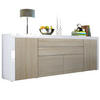 Stauraum: Das Sideboard ist ein wahres Platzwunder - 2 Türen, dahinter je zwei Fächer, 2 breite Schubladen und weitere 2 Klappen mit einem großen Innenraum, bieten viel Stauraum für allerlei Gegenstände.